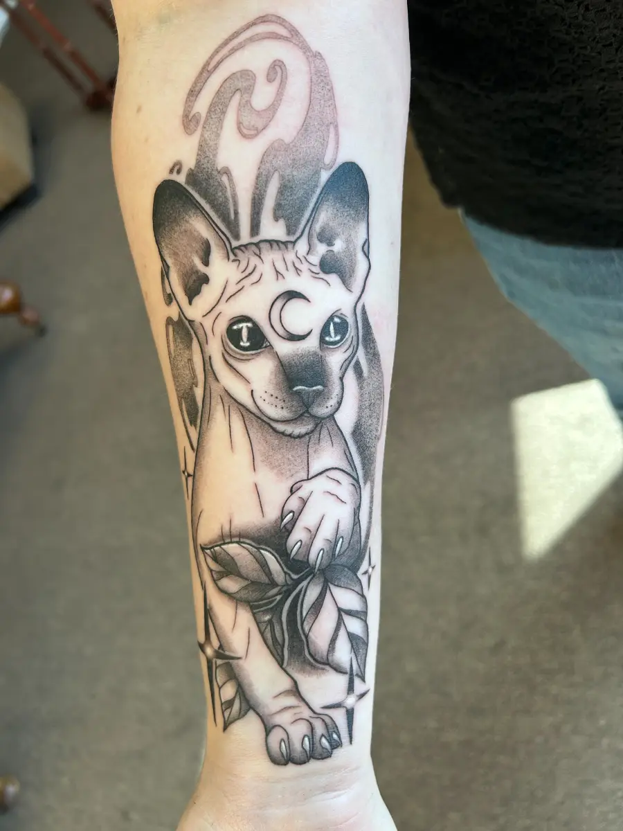Her favorite part of tattooing is seeing the finished piece and the joy on her client’s face. The most rewarding moments, though, come when she helps transform old or poorly done tattoos into something new—art that clients can finally feel proud of and excited to show off again.